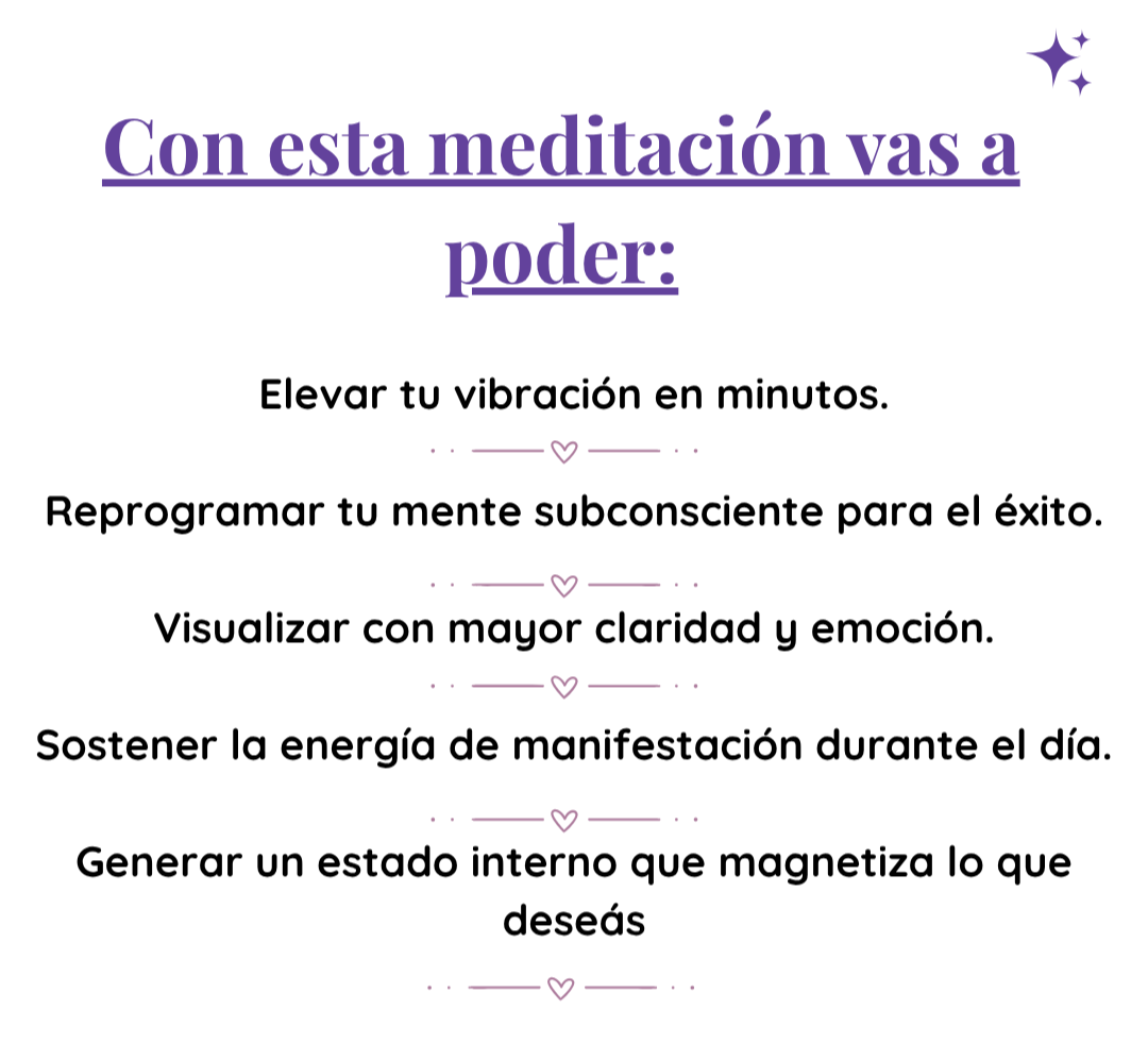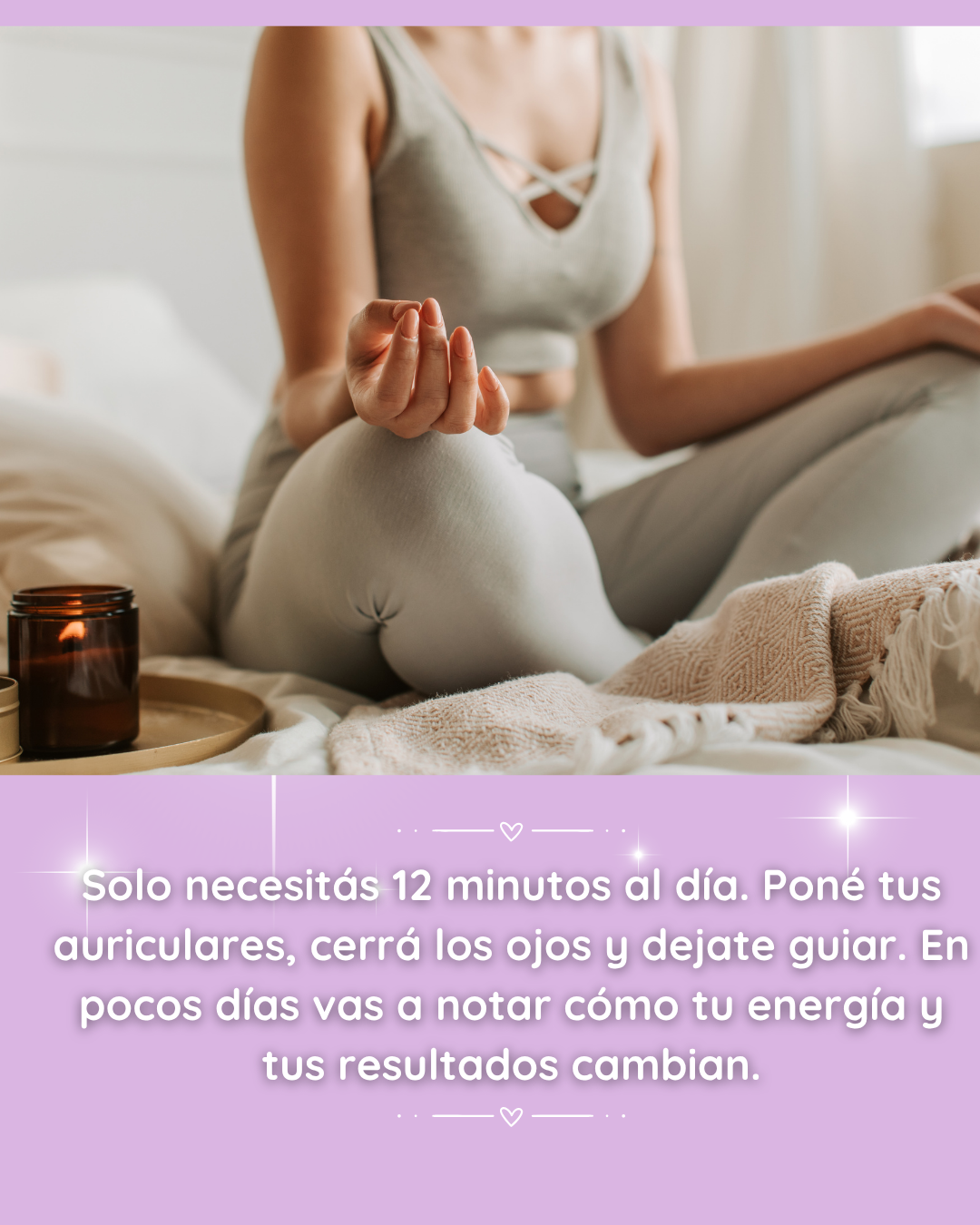 La meditación dura aproximadamente 12 minutos, lo justo para elevar tu vibración y programar tu mente sin importar cuán ocupada estés.